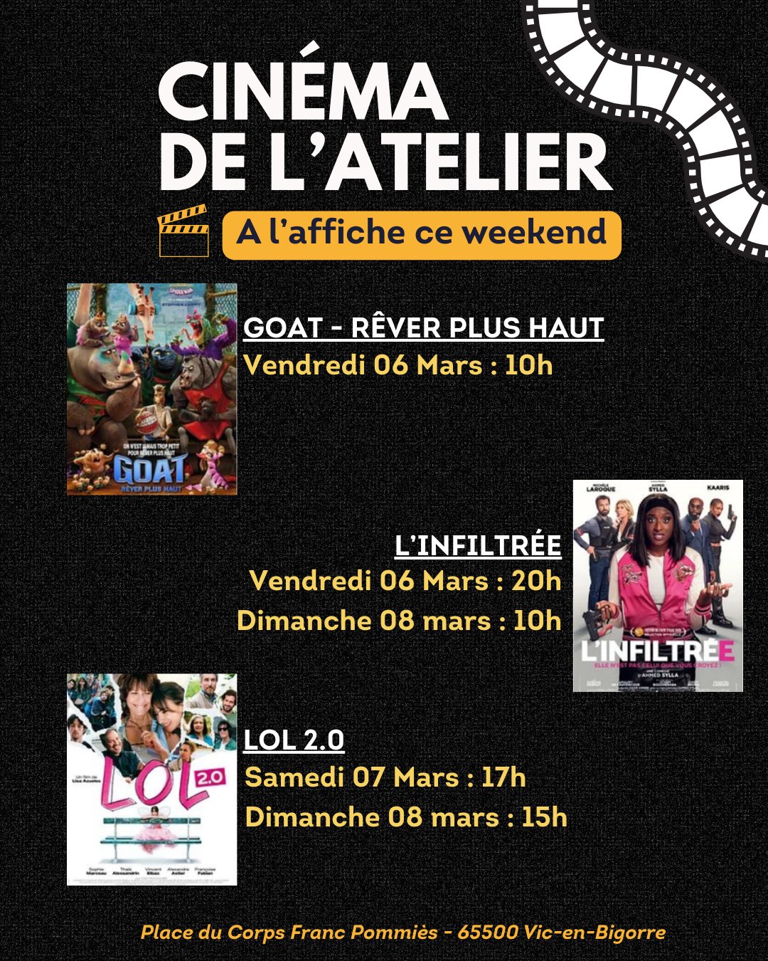 🎬 Ce week-end au Cinéma de l’Atelier – Vic-en-Bigorre 📽️